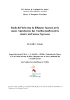 Etude de l’influence de différents facteurs sur le succès reproducteur des femelles mouflons de la réserve du Caroux-Espinouse Ce stage a été effectué dans la réserve nationale de chasse et de faune sauvage du Caroux-Espinouse. Magnifique espace naturel composé d’une mosaïque d’habitats encore bien préservés de l’impact néfaste de l’homme, cet endroit abrite aujourd’hui une des populations les plus étudiées et les plus importantes de mouflon méditerranéen (O. g. musimon x Ovis sp.). Cette population est suivie par une méthode de Capture-Marquage- Recapture (CMR) qui permet un approfondissement des connaissances sur la biologie de ces animaux et sur la dynamique de leur population. Capturés à l’aide de trappes disposées stratégiquement sur l’ensemble de la réserve, les mouflons sont ensuite marqués par un collier avec des bandes de couleurs affichant un code alphanumérique. C’est lors des sorties de lecture collier effectuées matin et soir au printemps et en automne que ces animaux sont re-capturés visuellement. Le suivi individuel permis par les marques autorise l’analyse de nombreux paramètres écologiques et biologiques de cette population. Le succès reproducteur des femelles mouflons est ici étudié afin de mieux comprendre les fluctuations de ce paramètre démographique et d’en identifier quelques variables phénotypiques et environnementales influençant ce succès de reproduction. -
