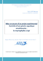 Mise en oeuvre d'un projet expérimental Contrôle d'une plante aquatique envahissante : le myriophylle à épi -