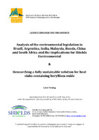 Analysis of the environmental legislation in Brazil, Argentina, India, Malaysia, Russia, China and South Africa and the implications for Shields Environmental & Researching a fully sustainable solution for heat sinks containing beryllium oxide -