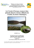 La Cistude d’Europe, toujours bien présente dans la retenue collinaire de l’Aubin, Pyrénées-Atlantiques La Cistude d’Europe est une espèce en déclin depuis plusieurs décennies. Elle fait actuellement partie des espèces menacées et fait donc l’objet de nombreux statuts de protection. Dans la vallée de l’Aubin, la présence d’un boisement humide, de marnières et d’un petit étang d’irrigation a permis l’installation d’une population de Cistudes d’Europe. Ici encore, le site a subi en 2000 des modifications suite à la réalisation d’une retenue collinaire. Depuis cette création, le Conservatoire d’Espaces Naturels d’Aquitaine met en place des mesures de gestion conservatoire sur la retenue à des fins de préservation. Le suivi réalisé en 2012 va permettre d’enrichir le Plan National d’Actions en faveur de la Cistude d’Europe et d’évaluer sur la population, l’impact de cet aménagement plus de 10 ans après. Cette année d’étude a révélé une population de petite taille (24 individus), mais les observations et les données récoltées lors des suivis antérieurs permettent d’estimer la taille de la population à une soixantaine d’individus. Ce site présente un grand intérêt car malgré les dérangements occasionnés, l’espèce s’est maintenue dans des proportions intéressantes. Le suivi a long