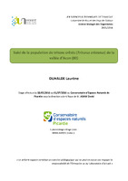 captures-recaptures ne présente pas de différence significative entre les deux années. Les variations de certains résultats peuvent résulter d’un biais provenant du protocole. Les individus ayant de la nourriture dans le tractus digestif et la répartition des individus sont, quant à eux, significativement différents d’une année à l’autre. Un intérêt particulier est à porter à ces résultats car un lien pourrait exister entre répartition des individus et sources de nourriture. La diminution importante des effectifs de micromammifères est attestée sur l’ensemble de la région et aura impacté l’ensemble du réseau trophique ce printemps 2015, dont les Couleuvres.