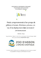 Etude comportementale d’un groupe de gibbons à bonnet, Hylobates pileatus, en vue d’un déplacement dans un nouvel environnement