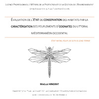 - Évaluation de l'état de conservation des habitats par la caractérisation des peuplements d'odonates du littoral méditerranéen. Etat initial pour un suivi à long terme