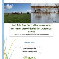Dans un mode de vie durable, l'agriculture du futur de doit autant d’être une source d’alimentation que créatrice de biodiversité. Ce sont ces objectifs qui sont étudiés au sein de l’Unité Expérimentale de l’INRA de Saint Laurent-de-la-Prée. Dans ce cadre et parmi d’autres protocoles, le suivi de la flore des prairies permanentes est effectué sur les parcelles de l’UE depuis 2009. Cette date de début présente une source d’informations cruciales lorsque la tempête Xynthia vient s’abattre sur les côtes de Charente Maritime le 28 février 2010. Un suivi de la flore des prairies permanentes sur plusieurs années permet d’évaluer leur capacité de résilience suite à cet événement climatique extrême. Toutes les parcelles de l’étude n’ont pas été impactées avec la même intensité par la tempête, certaines ont subi deux submersions, d’autres une seule et une parcelle n’a pas été touchée. Ceci permet de faire d’intéressantes comparaisons. Les données récoltées en 2016 viennent étayer les observations faites les années précédentes, plus les années passent et plus les parcelles se rapprochent de leur état pré-Xynthia. Le nombre de submersions joue un rôle essentiel dans la rapidité de cette résilience, tout comme les facteurs écologiques propres à chaque parcelle. Des phénomènes comme Xynthia ne sont, pour l’instant, pas courants sous nos latitudes mais leur étude apporte des informations qui pourraient s’avérer importantes dans un futur où le climat parait incertain. Toujours avec pour objectifs de répondre à un contexte actuel et de préparer un futur proche, l’étude des conséquences des pratiques agricoles sur les prairies permanentes de l’UE fait partie des priorités. Ainsi, un lien tente d’être établi entre biodiversité floristique et pression de pâturage par des bovins. Cependant, les taux de chargements pratiqués sur l’UE ne semblent pas assez intensifs pour mettre en avant un impact négatif sur la flore.