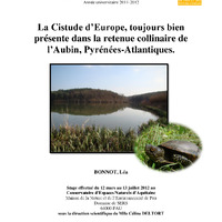 La Cistude d’Europe est une espèce en déclin depuis plusieurs décennies. Elle fait actuellement partie des espèces menacées et fait donc l’objet de nombreux statuts de protection. Dans la vallée de l’Aubin, la présence d’un boisement humide, de marnières et d’un petit étang d’irrigation a permis l’installation d’une population de Cistudes d’Europe. Ici encore, le site a subi en 2000 des modifications suite à la réalisation d’une retenue collinaire. Depuis cette création, le Conservatoire d’Espaces Naturels d’Aquitaine met en place des mesures de gestion conservatoire sur la retenue à des fins de préservation. Le suivi réalisé en 2012 va permettre d’enrichir le Plan National d’Actions en faveur de la Cistude d’Europe et d’évaluer sur la population, l’impact de cet aménagement plus de 10 ans après. Cette année d’étude a révélé une population de petite taille (24 individus), mais les observations et les données récoltées lors des suivis antérieurs permettent d’estimer la taille de la population à une soixantaine d’individus. Ce site présente un grand intérêt car malgré les dérangements occasionnés, l’espèce s’est maintenue dans des proportions intéressantes. Le suivi a long