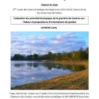 - Evaluation du potentiel écologique de la gravière de Cazères-sur l’Adour et propositions d’orientations de gestion