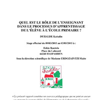 - Quel est le rôle de l'enseignant dans le processus d'apprentissage de l'élève à l'école primaire ?