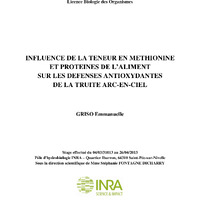 - Influence de la teneur en methionine et protéines de l'aliment sur les défenses antioxydantes de la truite arc-en-ciel